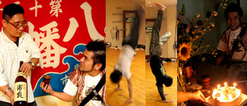 (左より:アーバンからの貢ぎ物を注ぐソムリエJAF、祝いの舞、7才のケーキ)